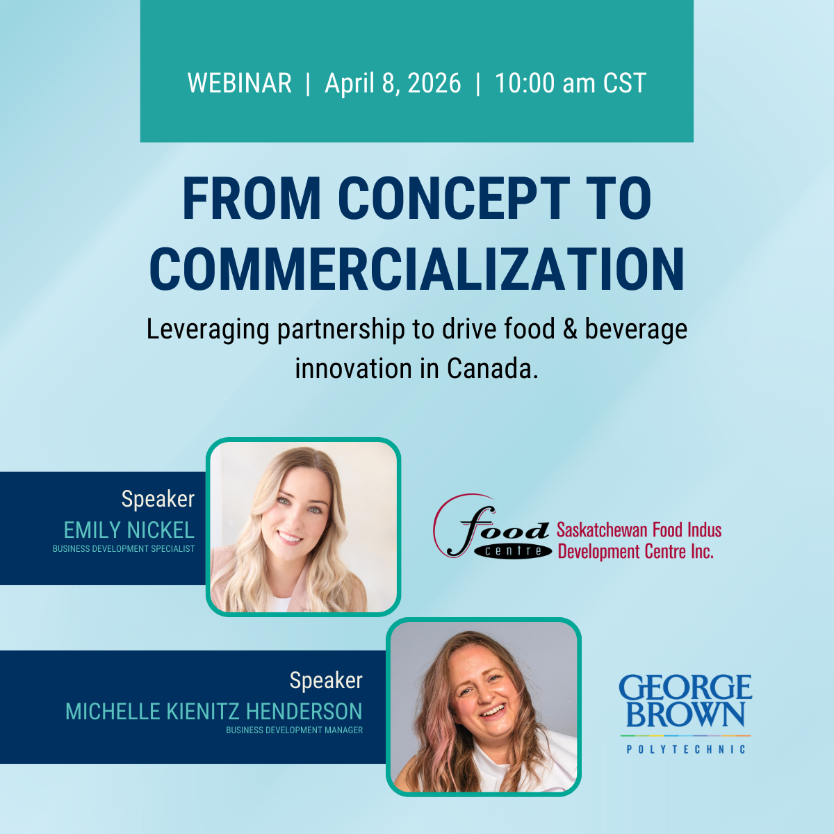 Join us on April 8, 2026 for this exclusive webinar! The Food Centre is excited to partner with George Brown Polytechnic’s FIRSt (Food Innovation & Research Studio) for a webinar that will explore the full journey from product development to consumer validation.